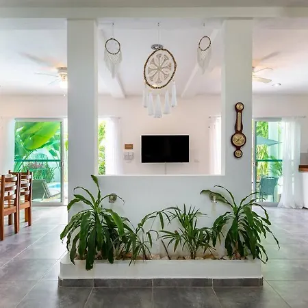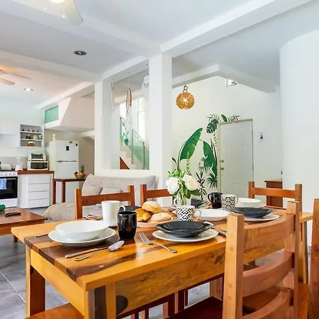 De 2-slaapkamer Casa Alegria By Sandy Powerful Tulum Pueblo ligt op 4 km afstand van Alumbra Mercado Orgánico en nodigt gasten uit om te genieten van een terras.